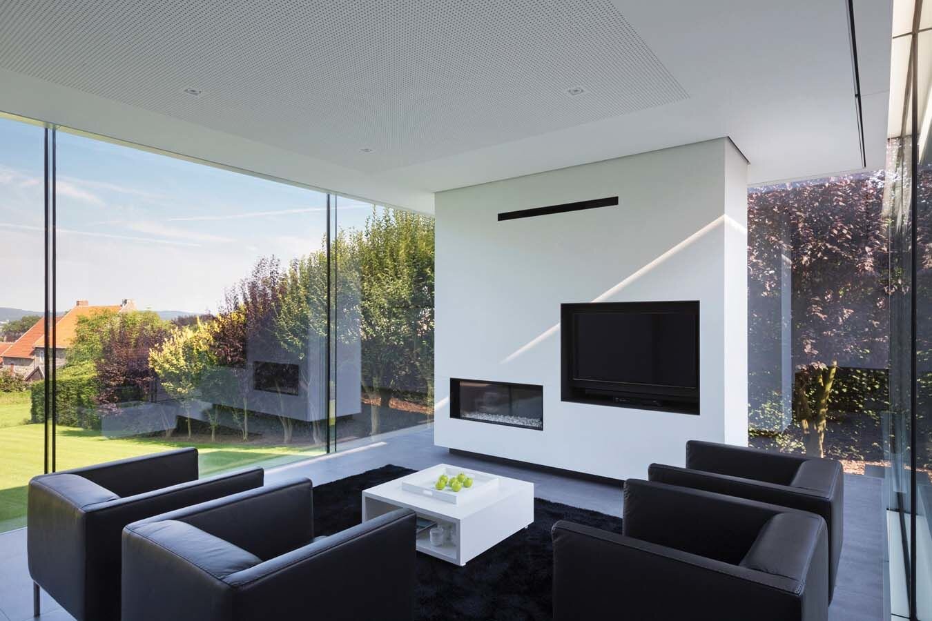 The large glass surfaces of Hi-Finity give a great feeling of comfort, by offering the thermal efficient solutions of double and triple glazing. With Ud values of less than 1.0 W/m2K, these glass panels are perfectly suited for low energy houses. Consequently, Hi-Finity has been awarded the energy-saving Minergie quality label.