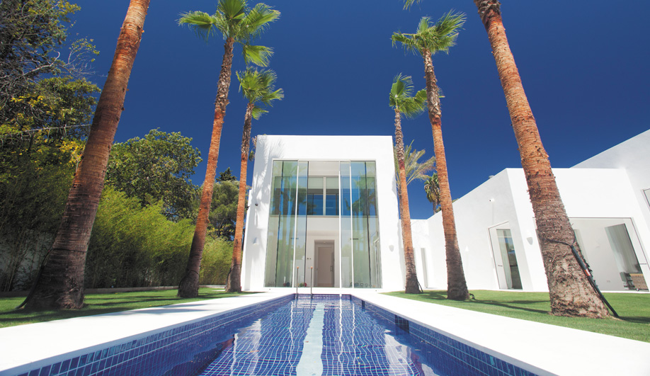By integrating the aluminum profiles into the walls, the glass surfaces are extending from floor to ceiling, creating the ultimate minimalistic appearance, merging indoor and outdoor into one. An extra design aspect is given by the design handle that has a slim, elegant and streamlined appearance.