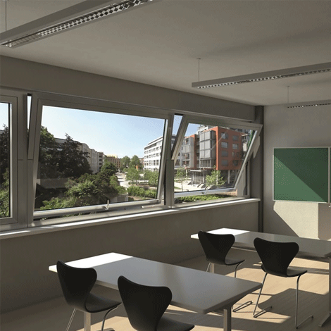 Innovative revival of horizontal and vertical pivot vents. Schüco offers a unique system solution for the intelligent opening type which can be used to create outstanding panoramic formats and is perfectly suited to flexible room ventilation – a balanced system with optimum user comfort.